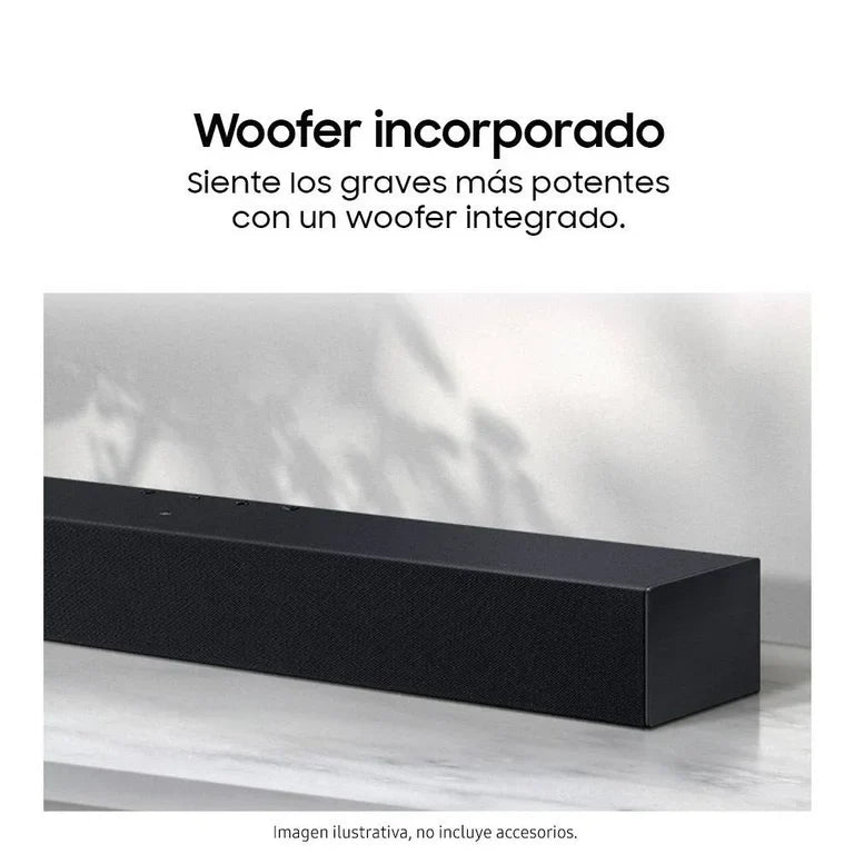 Mejora instantáneamente el audio de tu televisión con la Samsung HW-C400/ZX, una barra de sonido compacta, elegante y diseñada para ofrecer diálogos más claros, mejor definición y un sonido más envolvente sin ocupar mucho espacio. Es perfecta para recámaras, salas pequeñas, oficinas o cualquier lugar donde quieras un audio más potente sin complicaciones.