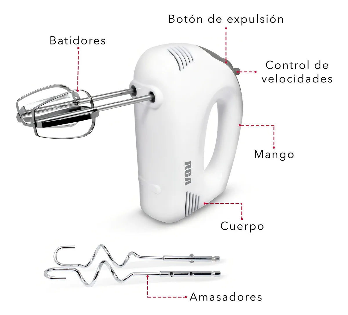 Batidora de Mano RCA RC-094 – 5 Velocidades, Potente, Ligera y Fácil de Usar