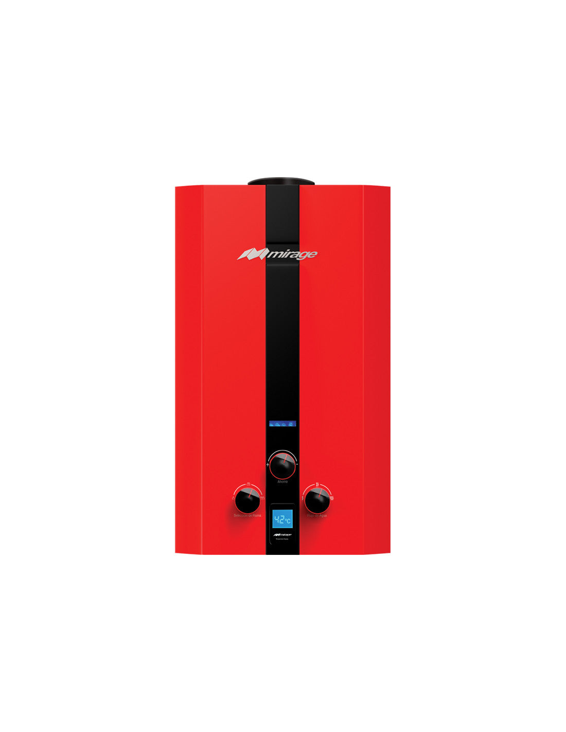 El Boiler Mirage FLUX de 16 litros por minuto es la solución perfecta para hogares grandes o negocios que requieren agua caliente constante en múltiples puntos, incluso cuando hay baja presión de agua. Su sistema de encendido automático sin piloto lo hace más seguro y eficiente, y su diseño moderno en color rojo añade un toque estético que destaca en cualquier instalación.