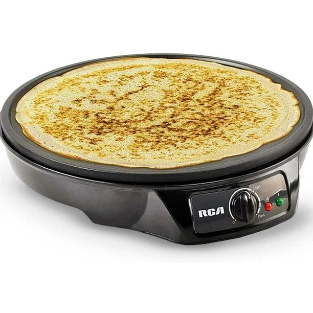 Superficie antiadherente de gran tamaño para preparar crepas finas y perfectas en minutos. Control de temperatura ajustable y luz indicadora de encendido.