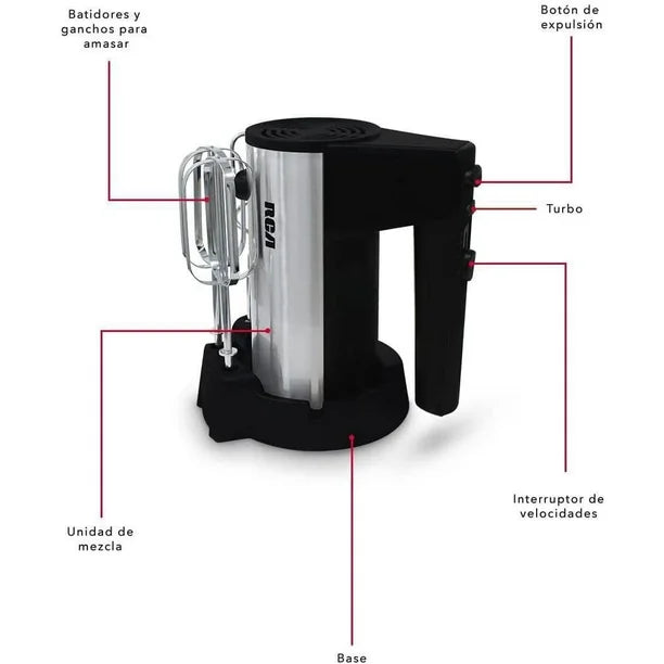 Potente y ligera, perfecta para batir masas, cremas o mezclas dulces con facilidad. Incluye accesorios desmontables para una limpieza rápida.