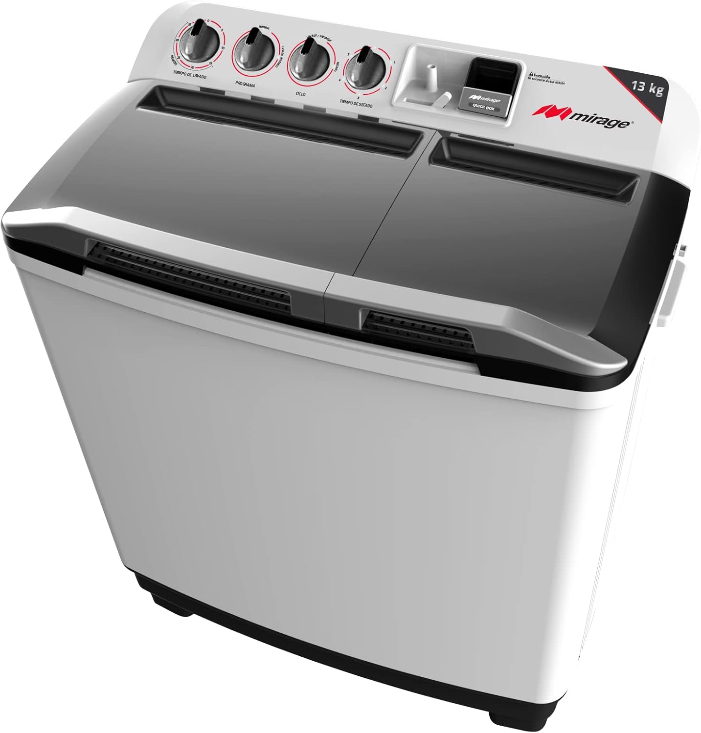 La Lavadora Semiautomática Mirage LMS013M de 13 kg está diseñada para brindar un lavado eficiente, económico y práctico en hogares que buscan ahorrar agua, energía y tiempo. Su sistema de doble tina permite lavar y centrifugar al mismo tiempo, optimizando cada carga con mayor control.