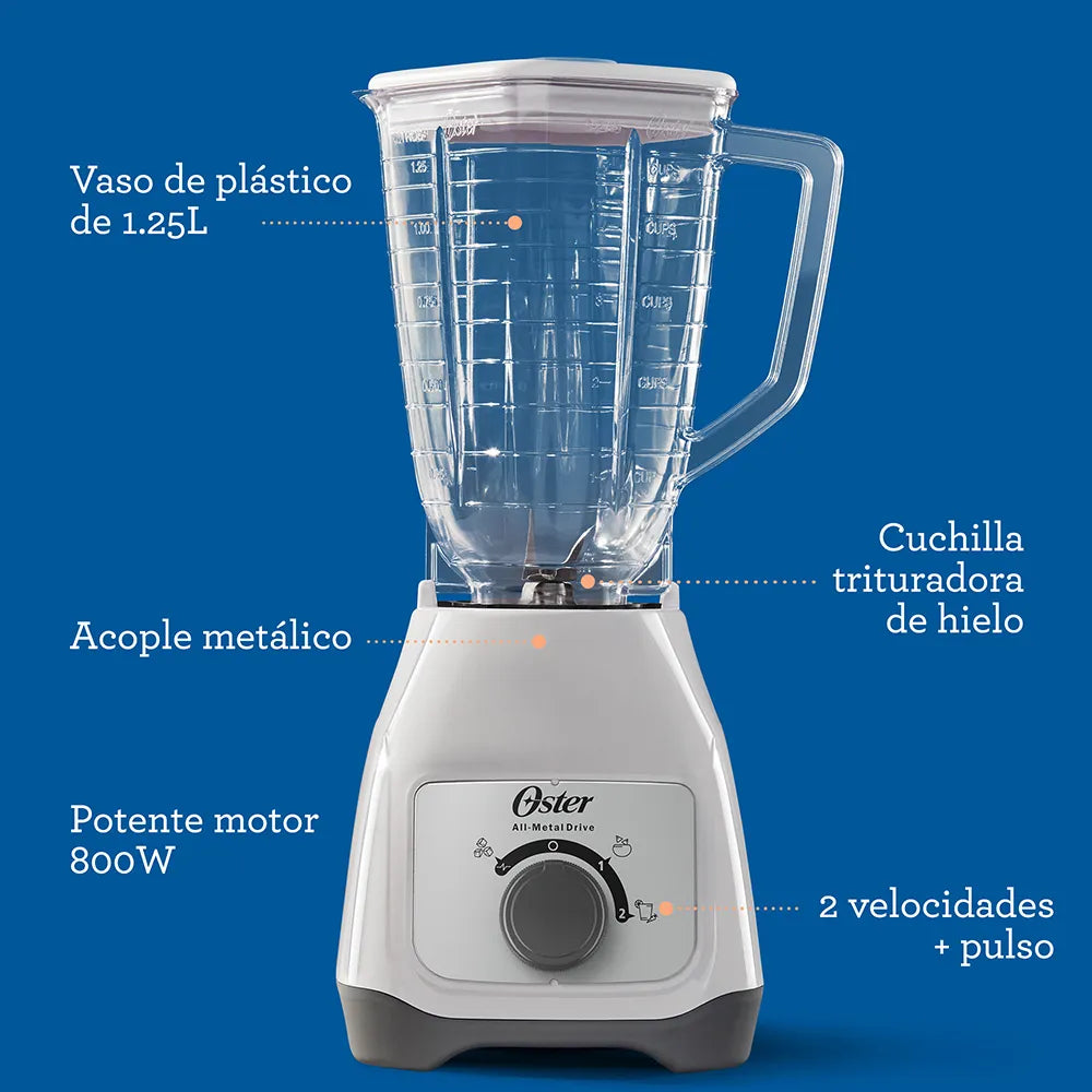 Licuadora Oster BLSTKAP-WRB-013 Kalimán – 2 Velocidades, 400W, Color Blanco con Vaso de Plástico